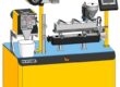 The cast film attachment is supplied with a vertically downward-pointing coat-hanger type die. It is designed to process many different polymers, producing thin films and sheets with a width of 125 mm producing max film/sheet thickness of around 1.2 mm. And it is equipped with many push-pull adjustment bolts for the lip, having a lip opening from 0.3 to 2.0 mm. The die is connected to the extruder with a c-clamp, and it is equipped with heaters that divide the die into 2 heating zones (left and right), both individually regulated with their designated temperature controllers from the onboard PLC connected to the touchscreen panel. The standard die for mini cast film is made with a max temperature of 300°C.